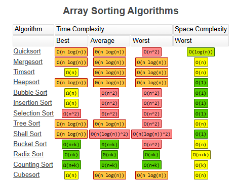 | O(n log n) | 선형로그 시간 | 가장 빠른 비교 정렬 | Merge sort, Quick Sort 평균 |