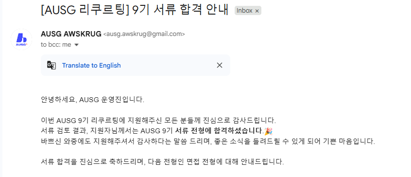 1차로 지원서를 쓰면서 AUSG에 들어가고 싶다는 마음이 더 커졌고,