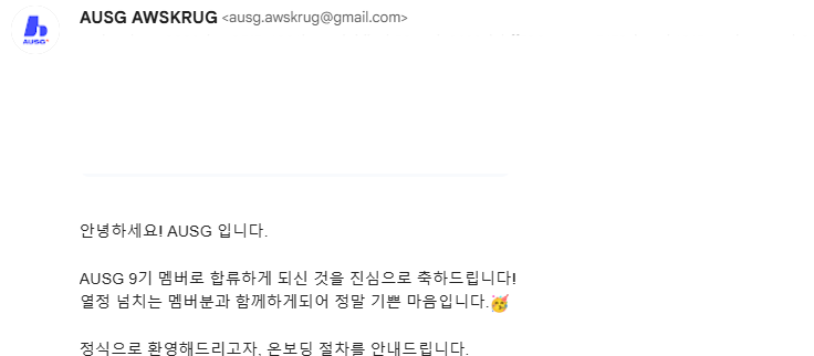 AUSG 전통인지 전화로 먼저 알려주시고 온보딩 메일이 왔다!